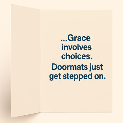 It’s rather difficult to talk about Grace as a thing—a tool—particularly since there’s nothing transactional about it. You can’t earn Grace and you can’t become undeserving of it. Grace is what we exhibit when we choose to give others (or ourselves) the benefit of the doubt. It’s the antithesis of mean-spiritedness. The opposite of quid pro quo.
